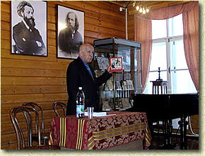 Свою речь Станислав Лесневский начал с поздравления с Днем Защитника Отечества, праздником, история которого начинается в далеком 1918 году. Поводом для встречи стало новое издание поэмы - ровесницы Красной армии, чье рождение нашло свое отражение в предельно смелом и откровенном взгляде поэта на страницах «Двенадцати». Издание с иллюстрациями художника Александра Аршинова, задуманное еще в двадцатых годах, осуществлено только в 2010 г. издательством «Прогресс-Плеяда». Его главный редактор рассказал об истории создания, образах и ритмическом строе самой поэмы, об их издателях и иллюстраторах. «Настало время и забытых рисунков Александра Аршинова. Очень неожиданные, резкие, где автор не романтизирует своих героев, они смело говорят о том, что историю творили самые простые люди, они помогут увидеть и понять и то время, и саму поэму». Книга, выпущенная тиражом в 2 000 экземпляров, сопровождена статьёй искусствоведа В.В. Гришкова о ранних иллюстрациях к поэме Александра Блока «Двенадцать» и хроникой жизни и творчества художника А.Н. Аршинова. В завершение встречи Станислав Лесневский ответил на вопросы ребят и оставил памятные надписи на книгах, переданных им в дар музею-заповеднику, литобъединению и школьным библиотекам. Этой встречей в музее-заповеднике А.А. Блока начались мероприятия, посвященные 130-й годовщине со дня рождения поэта, в программе которых предусмотрена работа по патриотическому воспитанию школьников, особенно важной и ответственной для музейных работников в год 65-летия Великой Победы. ГУК «Государственный историко-литературный и природный музей-заповедник А.А. Блока» (Шахматово) 141500, Московская область, г. Солнечногорск, ул. Набережная, 11 Тел./факс (495) 994-04-67 E-mail: blok@solnet.ru Сайт: http://shakchmatovo.amr-museum.ru/ |