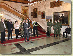 Экспозицию выставки составляют произведения живописи, графики, скульптуры из фондов Мордовского республиканского музея изобразительных искусств имени С.Д. Эрьзи и редкие документальные материалы, предметы солдатского быта из собрания Мемориального музея военного и трудового подвига 1941–1945 г.г. В организации выставки приняло участие Мордовское республиканское патриотическое объединение «Поиск». Выставка «Поклонимся великим тем годам…» свидетельствует о том, что эта тема – одна из самых животрепещущих в отечественном искусстве. |