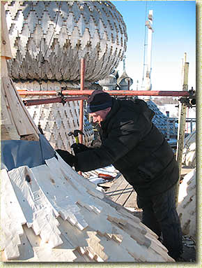 Покрытие главки Покровской церкви лемехом |