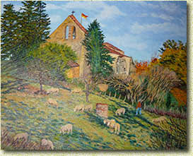 Жак Эбер. Церковь и овцы в деревне |