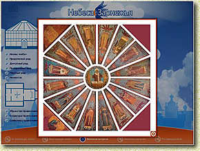 такой конструкцией закрепилось название «небеса». На выставке представлено подлинное потолочное убранство из нескольких заонежских часовен: во имя Успения Богоматери из д. Васильево, в честь иконы «Спас Нерукотворный» из д. Вигово, во имя Георгия Победоносца из д. Усть-Яндома, в честь Богородичной иконы «Знамение» из д. Корба, неизвестной заонежской часовни, церкви во имя Святителя Николы Чудотворца из д. Вегорукса и часовни Николы Угодника д. Мелой Губа. Значительная часть икон «неба» из фондов музея демонстрируется впервые. В основе иконографии «небес» – тема сослужения Пантократору чинов небесной иерархии и святых, которая широко раскрыта на выставке иконами херувимов, серафимов, архангелов, ангелов, праотцев, евангелистов и пророков. Иконография Творца на заонежских «небесах» различна: на Васильевском медальоне – Вседержитель; на Виговском и Вегоруксом – Новозаветная Троица; на усть-яндомском – Саваоф. С этими и другими иконописными изображениями из храмов Заонежья можно будет познакомиться в залах музея. Центральную часть выставки составит композиция из 8 икон-клиньев, имитирующих купол часовни в его зеркальном отражении. Размеры потолочных икон поражали не только жителей Заонежских сел XVII–XVIII вв., но и современного человека. Многие из них достигают двух и более метров. Выставка знакомит не только с иконами Обонежских храмов, но и, раскрывает ту самобытную культуру, которая жила и развивалась на северорусских землях, в частности в Заонежье. Посетителям на выставке предлагается семиминутный фильм с комментариями о реставрации икон, мультимедиа программы: в сенсорном киоске можно посмотреть слайд-фильм с иконами «небес», в зале на компьютере можно принять участие в виртуальном путешествии «Небеса» Заонежья» на сайте музея-заповедника http://kizhi.karelia.ru/journey/. Пресс-служба ГМИР Государственный музей истории религии |