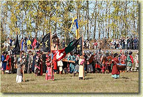 оружия. 18 сентября у памятника-колонны Дмитрию Донскому пройдет официальная часть праздника – воинские ритуалы и гражданский митинг «Достойны славы предков», принятие присяги, благословение на служение Отчизне военнослужащих РФ, вручение правительственных наград. В храмах Куликова поля в селе Монастырщина и на Красном холме в дни празднования годовщины сражения на Дону пройдут литургии и заупокойные панихиды по вождям и воинам, павшим за Отечество во все времена. Участники XIV Международного военно-исторического фестиваля «Поле Куликово» воссоздадут 18 сентября для десятков тысяч зрителей эпизод Куликовской битвы с поединками и массовыми столкновениями конных и пеших воинов. В реконструкции средневекового сражения будут задействованы современные ратники из Москвы, Коломны, Калуги, Самары, Казани, Ижевска, Радужного, Чаплыгина, Тулы, Выборга, Зеленограда, Пензы, Пскова, Астрахани, Белгорода, Воронежа и других регионов. В течение нескольких дней 16–18 сентября на берегу р. Татинки реконструкторы средневековой истории принимают участие в различных состязаниях. Турниры пеших и конных лучников, по метанию сулиц и историческому фехтованию, конные состязания и бугурты сменяют в дни фестиваля конкурсы исторической кухни, костюма и доспеха. В средневековом лагере проходят мастер-классы по обжигу керамики, выпечке хлеба, по изготовлению доспехов и костюма, по валянию войлока и крашению ткани, плетению из лозы, работают средневековая пивоварня и походная кузница. Лучшие вооруженные воины русской армии и золотоордынцы 18 сентября принимают участие в реконструкции эпизода Куликовской битвы на Красном холме, в параде-дефиле средневековых костюмов и доспехов, в пеших турнирах по историческому фехтованию. Краснохолмская ярмарка с аттракционами и русскими забавами вновь представит сувениры мастеров со всей России. Народные умельцы познакомят гостей Куликова поля с азами старинных промыслов и представят свои работы на конкурс «Ратные поля России в народном искусстве». Конкурс определит лучшее воплощение темы Куликовской битвы, Бородинского сражения и битвы на Прохоровском поле в народных промыслах. По традиции, гостей Первого ратного поля России 18 сентября ждут концертно-развлекательные и театрализованные программы «Куликово поле встречает гостей», «Широкая ярмарка», парад-концерт духовой музыки и военной песни. Интерактивные военно-исторические биваки познакомят гостей Куликова поля с военной историей эпохи средневековья, Петровского времени, Великой Отечественной войны и традициями современной Российской Армии. 19 и 21 сентября празднование 630 годовщины Куликовской битвы на Куликовом поле продолжится. 19 сентября пройдет посвящение студентов исторических факультетов ВУЗов Центральной России в «Хранители будущего». 21 сентября в селе Монастырщина на Аллее Памяти и Единства будут установлены мемориальные знаки от городов – участников Куликовской битвы. Программа праздничных мероприятий на Куликовом поле: www.kulpole.ru Пресс-служба Государственного музея-заповедника «Куликово поле» ФГУК «Государственный военно-исторический и природный