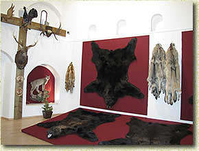 Трофеи являются символом победы над зверем и памятным знаком успеха. В Вологодской области охотничьими трофеями традиционно являются рога лося, шкуры и черепа медведя, волка, рыси, клыки кабана. Золотыми медалями награждены 140 трофеев. 80 трофеев стали серебряными медалистами и 70 бронзовыми. |