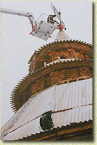 Памяти архитектора-реставратора, кузнеца, художника Всеволода Петровича Смирнова (1922–1996) Выставка «Радость у Покрова. Фотографическое повествование о реставрации Покровской башни» подготовлена совместно Псковским государственным объединенным историко-архитектурным и художественным музеем-заповедником, строительной компанией «ПГС II» (г. Санкт-Петербург), Псковским филиалом института «Спецпроектреставрация», Псковским областным отделением Всероссийского общества охраны памятников истории и культуры и редакцией газеты «Псковская губерния». Выставка посвящена памяти архитектора-реставратора, кузнеца, художника Всеволода Петровича Смирнова (2 апреля 1922 - 21 января 1996 года), первого реставратора Покровской башни, и открыта в 15-ю годовщину его кончины. На выставке представлены фотографии, сделанные редактором газеты «Псковская губерния» Львом Шлосбергом в период с 14 мая по 7 декабря 2010 г. Из более чем 3500 фотографий процесса реставрации шатра Покровской башни для выставки отобраны 108. Посетителям также представлены чертежи проекта реставрации шатра, выполненные сотрудниками Псковского филиала института «Спецпроектреставрация». Всеволод Петрович Смирнов (2 апреля 1922 - 21 января 1996) – архитектор-реставратор, кузнец, художник, член Союза архитекторов и Союза художников СССР. В.П. Смирнов родился в посёлке Мста Удомельского района Калининской области. Служил в Советской Армии с 1940 по 1946 годы, как солдат Великой Отечественной войны дошел до Берлина (в звании сержанта), был награжден двумя орденами Красной Звезды, двумя орденами Отечественной Войны, медалями, был дважды тяжело ранен. В Псков приехал в 1955 году по окончании архитектурного факультета Академии художеств в Ленинграде. С 1955 по 1967 годы В.П. Смирнов (с перерывами по независящим от него причинам) был ведущим специалистом Псковской специальной научно-реставрационной производственной мастерской (ПСНРПМ). В 1957 г., в результате постановления ЦК КПСС, объявившего приоритетом строительство жилья, а не реставрационные работы, ПСНРПМ была на долгие годы расформирована, коллектив «рассыпан» между «Псковоблпроектом» и «Ремстроем». Тем не менее, архитекторам-реставраторам удавалось добиваться проведения реставрационных работ в Пскове и в такой ситуации. Судьба ПСНРПМ была спасена статьей корреспондента «Правды» Ю.Д. Черниченко, приехавшего в Псков и написавшего о недопустимости разрушения реставрационного дела. Первой реставрационной работой В.П. Смирнова было спасение памятника архитектуры XV века – церкви Ильи Пророка в селе Выбуты, совместно с архитектором ПСНРПМ Верой Алексеевной Лебедевой. Одновременно В.П. Смирнов начал исследование выдающегося памятника архитектуры крепостного зодчества – Покровской башни Окольного города в Пскове. Башня, как и другие укрепления Окольного города, была засыпана землей и вошла в состав бастиона, сооруженного по инициативе Петра I в начале XVII века. Созданный В.П. Смирновым проект реставрации предполагал раскрытие сооружения от земли с сохранением фрагмента бастиона. Исследования проводились при участии архитектора Ю.В. Сусленникова. После освобождения башни от земли раскрылся величественный интерьер памятника. Хотя изначально башня имела деревянные перекрытия (мосты), было принято решение не разделять внутреннее пространс