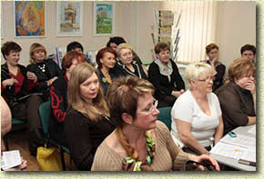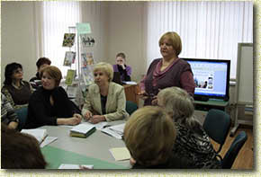 Ведущие – Наталья Волкова, заместитель начальника Управления образования, и Людмила Шилова, заместитель директора музея-заповедника «Кижи». Детский музейный центр в течение 17 лет работает как новая организационно-правовая модель, реальная система взаимодействия двух важнейших социокультурных институтов общества – музея и школы. Опыт работы ДМЦ демонстрирует принципиально новый подход к решению задач «образования культурой», переход от провозглашения объективных ценностей культуры к разработке методик, механизмов, технологий интерпретации, актуализации наследия и введению ребенка в мир культуры и музеев. Организаторы семинара познакомили участников с образовательным ресурсом нового Информационного музейно-образовательного комплекса (ИМОК) ДМЦ, с итогами республиканских конкурсов и фестивалей музейно-образовательных занятий и программ «Наследие – детям». Директора школ получили исчерпывающую информацию о социокультурных проектах по актуализации наследия Республики Карелия для детей, студентов, педагогов – «Детский музейный праздник «Кижи – мастерская детства», «Летний университет на о. Кижи», «Всероссийская летняя музейно-этнографическая школа на о. Кижи». Полезной была информация о музейно-образовательной инфраструктуре Детского музейного центра – системе инновационных музейно-образовательных комплексов ДМЦ в учреждениях образования г. Петрозаводска. Комплексы являются научно-методическими экспериментальными площадками в области дошкольной и школьной музейной педагогики, творческими центрами развития детей на базе наследия, динамично развиваются как социокультурные центры в микрорайонах города. Подводя итоги работы, Н.Д. Волкова дала высокую оценку семинару, подчеркнув, что информация об образовательном ресурсе музея-заповедника «Кижи» и Детского музейного центра была исчерпывающей и ценной, и предложила провести семинар для руководителей образовательных учреждений города непосредственно на острове Кижи. Научный руководитель ДМЦ музея «Кижи» Л.В. Шилова призвала больше обращаться к ресурсу школьных музеев, который пока мало используется в учебно-воспитательном процессе школы. Учитывая, что небольшое количество детей Карелии приезжает на остров Кижи, предложила директорам школ выступить с инициативой об организации социальных рейсов для школьников, а для выпускников школ разработать специальные программы, и тогда, возможно, каждый школьник, оканчивая 11 класс, сможет сказать: «Да, я был на острове Кижи и видел одно из чудес света!».