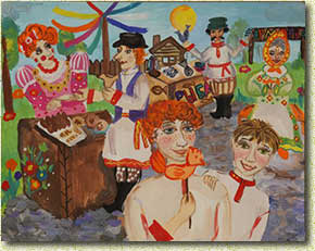 изделия ремесленников, ярмарочные забавы, чтобы красочно представить