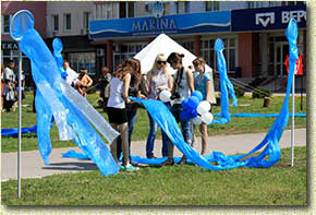остановиться, и взрослые рисовали по краям белого полотна баллонами, а