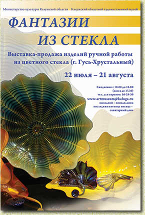 Гусь-Хрустального, но и приобрести понравившиеся экспонаты. Выставка продлится до 21 августа 2011 года. ГУК «Калужский областной художественный музей» 248600, г. Калуга, ул. Ленина, 104 Тел./факс (4842) 56-36-60 Тел. (4842) 56-28-30 E-mail: artmuseum@kaluga.ru Сайт: http://artmuseum.kaluga.ru/ |