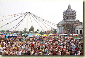 В программе Епифанской ярмарки: 08.00–15.10 Работа медовых рядов, работа ярмарочных рядов, выставка изделий народного творчества, работа мастер-классов. 13 августа Епифань представит тульский мед урожая 2011 года. Любителей народного творчества на Красной площади Епифани ждут разнообразные сувениры из разных уголков России – кружево, иконопись, батик, украшения из камня и бисера, сувениры из кожи, бересты, дерева, ткани, традиционные и авторские куклы и игрушки. На мастер-классах по художественной ковке, изготовлению глиняной посуды на гончарном круге, росписи филимоновской игрушки мастера научат любого желающего азам своего искусства. 10.00–10.45 Концертная программа Губернаторского духового оркестра под управлением П.Е. Балина 10.45–11.30 Театрализованный пролог и открытие ярмарки, выступление почетных гостей, награждение предприятий, коллективов и жителей п.Епифань |