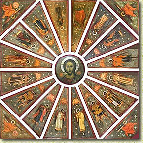 Небесами» называют иконные комплексы куполообразной формы, размещённые на потолках церквей и часовен. Изображение на иконах небес, как и на других иконах, по древней традиции наносилось на деревянное основание. Заонежье – это территория на севере России в Республике Карелия в северо-западной части Онежского озера – одного из крупнейших озёр в Европе. Иконографические традиции этой местности представляют большой интерес исследователей. В экспозиции представлены подлинные иконы заонежских церквей и часовен ХVII– ХIХ веков. Они приоткрывают духовный мир общения православных христиан со Спасителем, Богородицей и святыми. В «небесах» неразрывна связь искусства с богословской мыслью. |