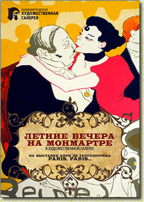 Каждую пятницу июня гостей галереи будут встречать артисты лучших театральных и музыкальных коллективов города. Мы предлагаем Вам стать частью яркого праздника, окунуться в атмосферу кабаре и ночной жизни богемы. 15 июня 2012 г. в программе вечера показ документального фильма о жизни и творчестве Анри де Тулуз-Лотрека, незабываемый перформанс от первого женского театра «Дель» – «Ах, Анри...». Театр «Дель» один из самых ярких и запоминающихся в Калининграде, в его репертуаре спектакли по произведениям Оскара Уайльда и Фридриха Ницше, Марины Цветаевой и Вильяма Шекспира. В этот вечер артисты театра приглашают вас увидеть Париж Анри де Тулуз-Лотрека. |