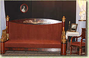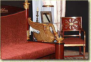 Массивный диван с подлокотниками в форме лебедей начала XIX века и кресло начала XIX века, принадлежавшие знаменитой танцовщице Айседоре Дункан. Оба экспоната в 20-е годы ХХ века находились в особняке балерины А.М. Балашовой на Пречистенке. Именно там жила А. Дункан, а в одном из залов она организовала школу танца для детей рабочих и крестьян. В этом доме бывали известные деятели искусств того времени и, разумеется, С.А. Есенин, который познакомился с Айседорой Дункан осенью 1921 года. Встречи на Пречистенке были описаны И.И. Шнейдером. Эти предметы постоянно экспонировались в литературном музее со дня его открытия. Диван и кресло были приобретены у переводчика и директора школы-студии А. Дункан И.И.Шнейдера, который сопровождал ее в Советской России. Уникальные предметы пострадали от времени. Конструкции дивана и кресла были расшатаны, поверхность предметов сильно загрязнена, декоративная резьба и накладные элементы с многочисленными утратами, расслоение шпона, потертости и частичная утрата позолоты подлокотников, трещины и сколы. Возникла угроза разрушения предметов. В 2009 году было принято решение диван и кресло, принадлежавшие А. Дункан, передать на реставрацию во Всероссийский художественный научно-реставрационный центр имени академика И.Э. Грабаря. На протяжении трех лет длилась работа специалистов под руководством Р.С. Студенникова. Реставраторами О.А. Кочемазовым и Е.Е. Колоколовой была проведена высококвалифицированная работа по изучению и восстановлению предметов. В течение реставрации были обнаружены неизвестные ранее детали. Оказалось, что первоначально обивка дивана имела совершенно другую цветовую гамму и текстуру: специалистами были найдены фрагменты ткани бордового цвета в мелкую рельефную полоску. Так же с внутренней стороны тумбы дивана была выявлена надпись «Иван Титов». Мы можем предположить, что это имя изготовителя предмета. После реставрации диван и кресло вернулись в экспозицию литературного музея. ГУК «Государственный музей-заповедник С.А. Есенина» 391103, Рязанская область, Рыбновский р-н, с. Константиново Тел./ факс (4912) 42-81-96 Тел.: (49137) 33-2-57 (экскурс.отд.), 33-2-40 E-mail: museumesenin@gmail.com Сайт музея http://www.museum-esenin.ru/ |