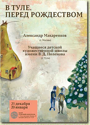 В этом году на выставке будут представлены работы известного московского живописца, автора и исполнителя песен Александра Макаренкова и учащихся Тульской детской школы искусств им. Поленова. Слова художника и поэта Александра Макаренкова «Там, где ангелы летают. Там, где крыльев белый снег…» – своего рода пароль к Рождеству, координаты страны, откуда приходит новолетие, обновление, свежесть и детская непосредственность восприятия мира, которая даётся каждому (хотя бы ненадолго) в эти волшебные рождественские дни. Будто из этого снега появился и сам Александр Макаренков, словно Дед Мороз, с запахом елок, костра и северного ветра – бородатый сказочник с гитарой. |