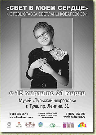 В декабре 2012 года фотограф Светлана Ковалевская провела благотворительную акцию для детей-инвалидов «Свет в моём сердце». Акцию поддержали несколько организаций, обеспечив студию для фотосъёмки, подарки для детей. В благотворительной фотосессии приняли участие 23 ребёнка (от 1 года до 12 лет) с различными тяжёлыми заболеваниями, такими как синдром Дауна, онкология и другие. В Тульском регионе такая акция проводится впервые и имеет целью привлечение внимания общественности к проблемам детей-инвалидов, а также дать возможность всем неравнодушным оказать им финансовую и моральную поддержку. |