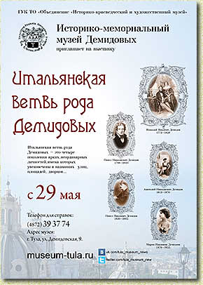 Демидовы в Италии – это целая эпоха истории Флоренции, Рима и других итальянских городов. За длительное время пребывания Демидовых на итальянской земле сложилась целая тосканская династия, в которую вошли наиболее яркие представители рода Демидовых, связавшие свою жизнь с этой страной до 1955 года. В Италии Демидовы занимались предпринимательством, меценатством, благотворительностью и коллекционированием. Они стали частью европейского культурного общества, тем самым, объединяя Россию с Европой. Выставка «Итальянская ветвь рода Демидовых» является продолжением крупного совместного выставочного проекта «Демидовы в Италии». |