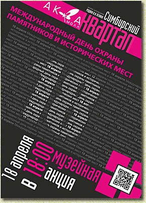 Ежегодно 18 апреля отмечается Международный день охраны памятников и исторических мест (учрежден в 1982 году ЮНЕСКО). Инициаторами проведения такого праздника выступило профессиональное сообщество: архитекторы, ученые, реставраторы, работники государственных учреждений. В этот день Музей-заповедник «Родина В.И. Ленина» совместно с ТРЦ «Аквамолл» проводят акцию для жителей и гостей города Ульяновска с целью привлечения внимания общественности к проблеме сохранения архитектурных памятников и исторического центра Симбирска-Ульяновска. |