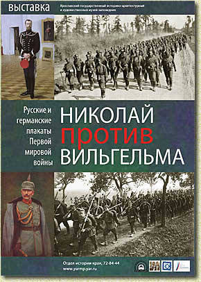 Выставка плакатов Первой мировой войны «Николай против Вильгельма» является частью большого музейного проекта «Голоса и лица Первой мировой в семейной памяти». Этот проект в 2013 году стал победителем конкурса «Меняющийся музей в меняющемся мире», проводимого благотворительным фондом Владимира Потанина. В рамках этого проекта уже состоялась выставка «Великая война в миниатюре», на которой были представлены русские и немецкие открытки, выпущенные в период 1914–1918 годов. К началу Первой мировой войны военного плаката, в привычном понимании этого слова, в нашей стране еще не было – стилистика плакатов только зарождалась. |