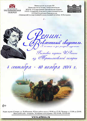 К 170-летию со дня рождения художника». Год назад Самарский художественный музей выступил с инициативой проведения первой в истории Самарской губернии выставки Ильи Репина в честь 170-летия со дня рождения художника в 2014 году. При поддержке министерства культуры Самарской области эта уникальная выставка стала возможной. Мы рады представить ее нашим зрителям в течение трех месяцев, с сентября по декабрь. Художественная эволюция Репина как автора совпала с яркой эпохой рубежа XIX–ХХ веков. Её свидетелем – заинтересованным, причастным, деятельным, был художник, запечатлевший ключевые типажи своего времени. |