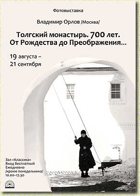 соавторами фотохудожника). В январе 2014 года выставка экспонировалась в московском объединении «Фотоцентр» на Гоголевском бульваре. В экспозиции в Ярославле представлено 40 черно-белых фотографий. Эти снимки не просто демонстрируют привычные открыточные виды монастыря, но и приоткрывают сакральную и мистическую завесу внутреннего монастырского мира. Автор выставки Владимир Орлов – член Союза фотохудожников России, неоднократный участник и победитель различных фотоконкурсов среди которых Best Russianscape 2011, The best of Russia 2011, 2012, 2013 гг., Epson «Моя любимая фотография» 2011–2012 (Природа), 7-го Международного фотофестиваля в Угличе 2013 г. и др. Выставка работает с 19 августа по 21 сентября ежедневно (кроме понедельника) с 10.00 – до 17.30. Вход бесплатный. ГАУК ЯО «Ярославский государственный историко-архитектурный и художественный музей-заповедник» 150000, г. Ярославль, Богоявленская пл., 25. Тел./ факс (4852) 30-38-69 (экскурс. бюро) Тел.: (4852) 30-40-72, 30-56-30 E-mail: yarmp@yar.ru Сайт www.yarmp.yar.ru |