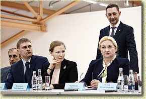 Директор НРЦ им. И.Э. Грабаря А.Н. Лесовой, директор Омского музея изобразительных искусств им. М.А. Врубеля Ю.В. Трофимов, зам. Министра культуры РФ Е.Б. Миловзорова, гл. хранитель Омского музея изобразительных искусств им. М.А. Врубеля А.Е. Чернявская, директор ГосНИИР Д.Б. Антонов |