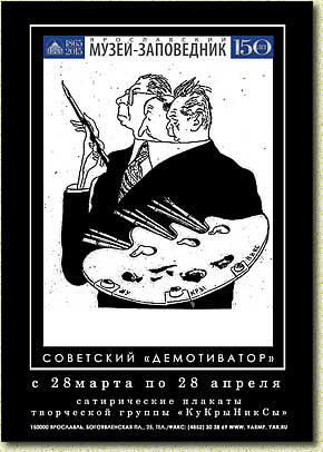 место в этом жанре занимает творчество «КуКрыНикСов». Псевдоним творческого коллектива советских графиков и живописцев – КуКрыНикСы – сложился из первых слогов личных имен и фамилий: Михаил Куприянов (Ку), Порфирий Крылов (Кры), Николай Соколов ((НикС). Все они - действительные члены АХ СССР (1947), народные художники СССР (1958). Этот коллектив сложился в 1924 году. Выступая в газетах и журналах «Правда», «Крокодил» и других, они, в тесном сотрудничестве с журналистами, выработали новый тип карикатуры, отмеченный острой злободневностью, уничтожающе-язвительным решением темы, шаржированной характерностью типов. За политические карикатуры и плакаты художники были удостоены Государственной премии СССР (1942) и Ленинской премии (1965). Контакты: (4852) 72 90 87 – Юлия Сабирова куратор выставки, 72 95 05 – отдел информации. ГАУК ЯО «Ярославский государственный историко-архитектурный и художественный музей-заповедник» 150000, г. Ярославль, Богоявленская пл., 25. Тел./ факс (4852) 30-38-69 (экскурс. бюро) Тел.: (4852) 30-40-72, 30-56-30 E-mail: yarmp@yar.ru Сайт www.yarmp.yar.ru |