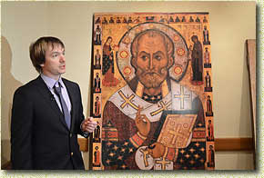 иконографическим изводом, и другие. Экспонаты представляют собой копии в полный размер, выполненные в технике печати по твердой поверхности. Полный цикл изготовления копий производит ООО «Софийская набережная» (Москва). «Это самая на данный момент современная технология печати, – отметил руководитель проекта Кирилл Зверев. – Она производится ультрафиолетовыми красками, которые изобрели японцы. Для печати такой иконы мы используем доску, подготовленную по всем технологиям, как для живописи. Печать занимает около одно дня. А вот подготовка, цветопробы занимают около полугода». Несмотря на то, что в России технология существует уже несколько лет, впервые осуществлен опыт копирования столь древних и больших по размеру икон. Из обширной коллекции Новгородского музея были выбраны всемирно известные шедевры, которые дают представление о многообразии форм древнерусской иконописи. На презентации советник генерального директора Новгородского музея-заповедника Исак Фрейдман рассказал, что проект начался с желания партнеров из Страсбурга привезти часть коллекции к себе на выставку. Но высокая страховая стоимость, охрана и сложные условия транспортировки и экспонирования не позволяют показывать оригиналы где-либо, кроме Великого Новгорода. «Предназначение выставки – рассказывать о лучших памятниках в собрании Новгородского музея-заповедника на территории России и, может, за ее пределами,– комментирует Исак Фрейдман. – На сегодняшний день решено, что выставка в мае уезжает в Сочи и пробудет там два месяца. Осенью она будет демонстрироваться в Симферопольском художественном музее. И сейчас рассматривается большой проект ее путешествия по городам Крыма». Заместитель генерального директора по научно-просветительской работе Ольга Конюхова отметила, что создание передвижной выставки, наиболее характерно представляющей коллекцию музея, это большой этап: «Только за 2014 год мы участвовали в порядка 10 международных выставках – Франция, Германия, Великобритания. Ведущие мировые музеи готовы принять новгородские экспонаты. Но это всегда единичные экземпляры. Новый проект больше, чем выставка иконописи, это популяризация одного из самых достойных российских культурных центров. Мы надеемся, выставки будут сопровождаться и качественными просветительскими кампаниями». Высокое качество исполнения копий, передающих фактур и цвет оригинала, отметила искусствовед Людмила Секретарь. ФГБУК «Новгородский государственный объединённый музей-заповедник» 173007, г. Великий Новгород, Кремль, 11 Тел./факс (8162) 77-36-08 Тел./факс (8162) 77-37-70 (экскурс. отдел), 77-37-38 (информ. служба) E-mail: adm@novgorodmuseum.ru Сайт: http://www.novgorodmuseum.ru/ |