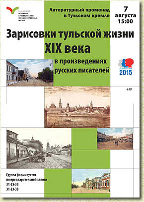 На страницах произведений И.С. Тургенева, В.А. Жуковского, Л.Н. Толстого сохранились описания городского быта Тульской губернии XIX – начала XX века с интересными обычаями, традициями, отражающими очарование русского провинциального губернского города. Окунуться в неповторимый колорит тех лет вы сможете, посетив нашу экскурсию «Зарисовки тульской жизни XIX – начала XX века в произведениях русских писателей». Уроженка Тулы Амалия Карловна, «дама приятная во всех отношениях», познакомит гостей мероприятия с литературными персонажами прошлого – перед экскурсантами оживут картинки городского быта Тулы XIX – начала XX вв. |