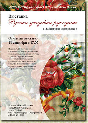 и в произведениях Л.Н. Толстого. В русских усадьбах рукоделие – это не бытовое и вовсе не домашнее, а многогранное общественное явление. С одной стороны, усадебная культура рукоделия основывалась на светской культуре, развивающейся по своим законам в условиях распространения специализированной печатной продукции, технических новинок, перенимания зарубежного опыта рукоделия посредством бытового общения с гувернантками из разных стран. С другой стороны, в ней запечатлено самобытное народное творчество с особенностями рукоделия крепостных. Выставка будет работать до 1 ноября 2015 г. по адресу: г. Тула, ул. Октябрьская, д.12. Тел. для справок (4872) 47-35-80. Галерея «Ясная Поляна» (Научно-культурный центр ГМПЗ «Музей-усадьба Л.Н. Толстого «Ясная Поляна») г. Тула, ул. Октябрьская, 12 Тел.: (4872) 47-35-80 Сайт: http://ypmuseum.ru/ |