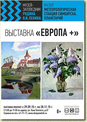 композиции, прикладному искусству, истории искусств. Кроме преподавательской деятельности Валерий Сергеевич постоянно работает творчески как художник, является постоянным участником областных и региональных художественных выставок. Посетители выставки «Европа+» увидят более 30 его работ в жанре пейзажа и натюрморта, а также серию портретов и этюдов, выполненных после посещения Италии и Польши. Экспозиция непременно будет дополнена картинами родных просторов. Выставка продлится до 27 ноября 2015 г. Ждём Вас по адресу: г. Ульяновск, ул. Л.Толстого, д.67, тел.: (8422) 41-71-11 ФГБУК «Государственный историко-мемориальный музей-заповедник "Родина В.И. Ленина"» 432063, г. Ульяновск, ул. Ленина, 98 Тел./факс (8422) 32-63-62 Тел.: (8422) 32-55-13, 32-45-32 E-mail: info@ulzapovednik.ru |