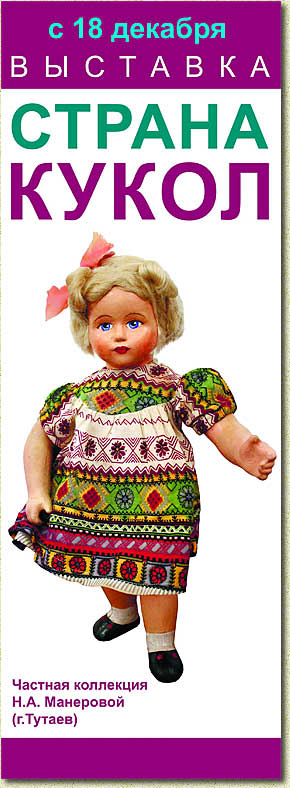 Выставка продолжает сложившуюся добрую музейную традицию – в канун Нового года радовать посетителей встречей со сказкой, чудом, возвращением в собственное детство. И если в прошлом декабре гостей Ярославского музея-заповедника встречал «Парад дедов Морозов», то теперь мы приглашаем гостей отправиться в «Страну кукол». Все экспонаты для выставки предоставлены частным коллекционером из города Тутаева Надеждой Анатольевной Манеровой. Коллекция Надежды Анатольевны велика, в музейных залах представлена лишь её часть, а это – более двухсот экспонатов. Это куклы конца XIX – начала XXI века, антикварные и современные, произведенные в России, Китае, Тайване, Англии, Германии, Италии. Особенностью этой частной коллекции и её большой редкостью является собрание текстильных кукол 20–30 годов прошлого века, которые изготавливались в московских артелях. Эти куклы представляют собой характерные фигурки, одетые в повседневный бытовой крестьянский костюм – платки, домотканые юбки, зипуны, плетеные лапти. Лица этих куколок тоже текстильные и расписаны вручную. Впервые оказавшись за границей – на Всемирной выставке в США в 1939 году – они произвели настоящий фурор, и еще некоторое время советские артельщики выпускали подобных куколок на экспорт. |