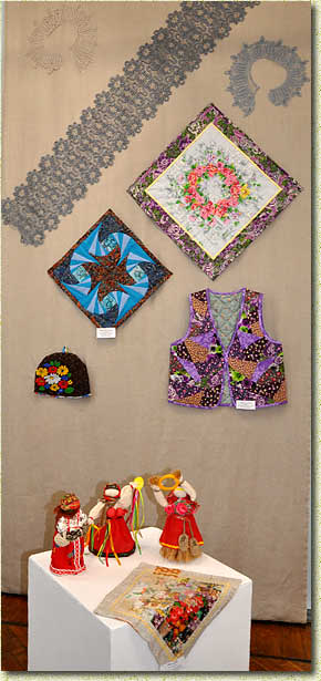 Михаил Сергеевич Голицын – потомок известного рода и большой друг музея отметил в этом году восьмидесятилетие. Его неиссякаемая энергия и творческий напор, отражённые в изделиях из дерева и капа, просто не дают возможности остаться в стороне от прекрасного. Зинаида Владимировна Федянова - талантливая мастерица, руководитель творческой мастерской «Фантазия» ДК «Родина» предоставила для экспонирования произведения – репродукции картин ковровского художника Владимира Фёдоровича Федянова. Посвящены эти искусные полотна памяти большого мастера и любимого супруга. Привлекли внимание первых посетителей выставки куклы в русских традициях, куклы из жидкого фарфора, текстильные куклы-тильды. Макраме, лозоплетение, лоскутное шитьё, выжигание по ткани и дереву, валяние на марле, вышивка.. Это далеко не весь список направлений творчества мастеровых людей нашей ковровской земли. Ярким приветствием для всех стала «поздравительная открытка» от воспитанников хорового отделения «Музыкальный фольклор» ДМШ № 1 под руководством Грицкевич О.В., Закатовой М.А., Закатовой Н.А.. |