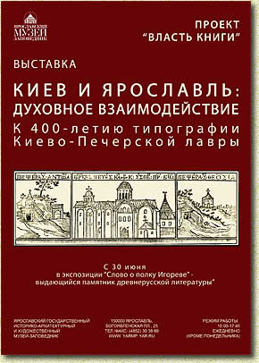 время ежедневных церковных служб). В трудный период обострения политической и церковной борьбы между Речью Посполитой и Русским государством именно Лавра стала оплотом православия в Юго-Западной Руси. Неоценима роль, которую сыграла Киево-Печерская Лавра в духовной поддержке русского населения Речи Посполитой, в снабжении православных приходов богослужебными книгами. На выставке представлены богослужебные книги, издания трудов украинских богословов, сочинений отцов церкви, библейских книг, молитвословы. Важное место в экспозиции занимают четыре издания, имеющие особое значение для русской культуры – это «Беседы Иоанна Златоуста», «Синопсис Иннокентия Гизеля», «Книга житий Димитрия Ростовского», «Акафист св. Варваре». Несомненным достоинством изданий Лавры является их богатое художественное оформление. Обилие гравюр в книгах позволяет представить разнообразие сюжетов и техник, а в отдельных случаях подчеркивает связь с московским книгоизданием. Экспозиция заостряет внимание посетителей и на книжных переплетах, многие из которых, особенно пергаменные, с ручной раскраской, являются великолепными образцами декоративно-прикладного искусства. Выставка знакомит с выдающимся церковным деятелем XVIII века Арсением (Мацеевич), митрополитом Ростовским. Благодаря ему в собрании Архиерейского дома сохранились редчайшие памятники дониконовской книжной печати, а ростовские иконописцы обучались новой технике – живописи по эмали у киевского монаха Павла Казановича. Кроме книжных раритетов в экспозиции представлены иконы, а также произведения эмальерного искусства. Многие из экспонатов доступны вниманию публики впервые. Выставка продлится до 31 июля 2016 г. Контакты: (4852) 32 96 04 – Татьяна Ивановна Гулина, куратор выставки; 72 95 05 – отдел информации. ГАУК ЯО «Ярославский государственный историко-архитектурный и художественный музей-заповедник» 150000, г. Ярославль, Богоявленская пл., 25. Тел./ факс (4852) 30-38-69 (экскурс. бюро) Тел.: (4852) 30-40-72, 30-56-30 E-mail: yarmp@yar.ru Сайт www.yarmp.yar.ru |