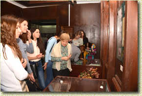 Смирнова Вера Владимировна – кандидат филологических наук Института филологии и журналистики ФГБОУ ВО «Саратовский государственный университет имени Н.Г. Чернышевского» (Саратов) и студенты знакомятся с выставкой «Памяти А.А.Демченко» |