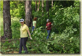 | В с. Тургенево нас встретил начальник сектора культуры администрации Чернского района Владимир Зайцев. Несколько часов было посвящено расчистке части территории усадебного парка, посаженного еще дедом И.С. Тургенева Николаем Алексеевичем в начале XIX в., – одной из его сосновых аллей, примыкающей к берегу р. Снежедь. | |