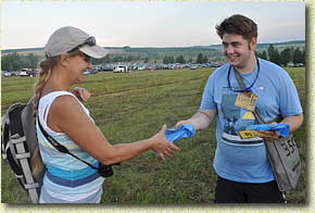В этом году на традиционном литературно-песенном празднике «Песни Бежина луга», прошедшем 29 июня в Чернском районе, впервые прошла волонтерская акция «Сохраняем вместе!», предложенная Чернским историко-краеведческим музеем им. Н.А. Вознесенского и поддержанная Ассоциацией музейных работников. Участники акции раздали гостям праздника около тысячи ярких листовок и синих пакетов для мусора, чтобы они могли перед отъездом домой убрать за собой мусор и оставить его на отведенных для этого площадках. |